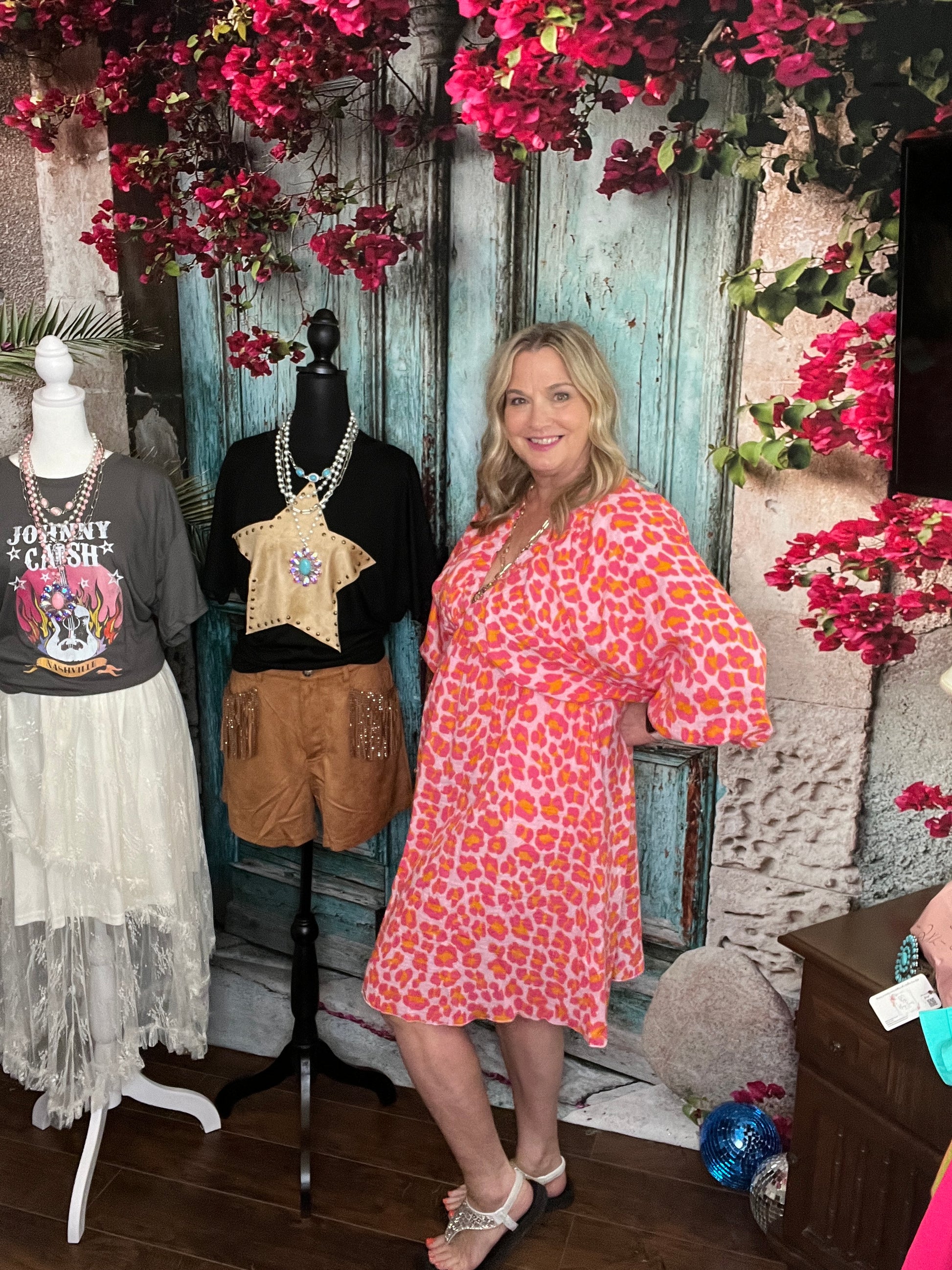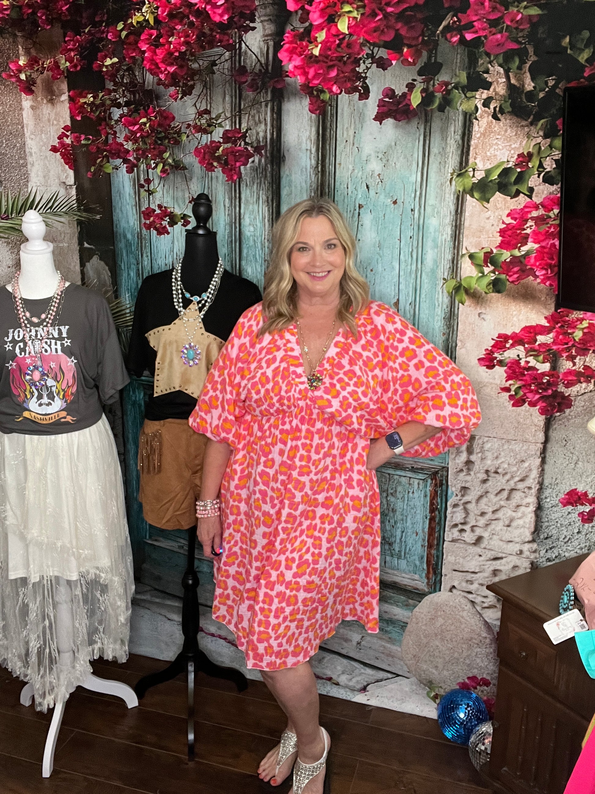 Unleash your inner confidence with the Fierce Elegance Leopard Dress! 🐆✨ This stunning dress blends bold, timeless leopard print with chic, flattering details. The elegant V-neckline highlights your collarbone, while the 3/4 puff sleeves add a playful, feminine flair. The elasticated waist ensures a comfortable, flattering fit that moves with you. Whether you're heading to a brunch date or a night out, this dress is a statement piece that will have all eyes on you!