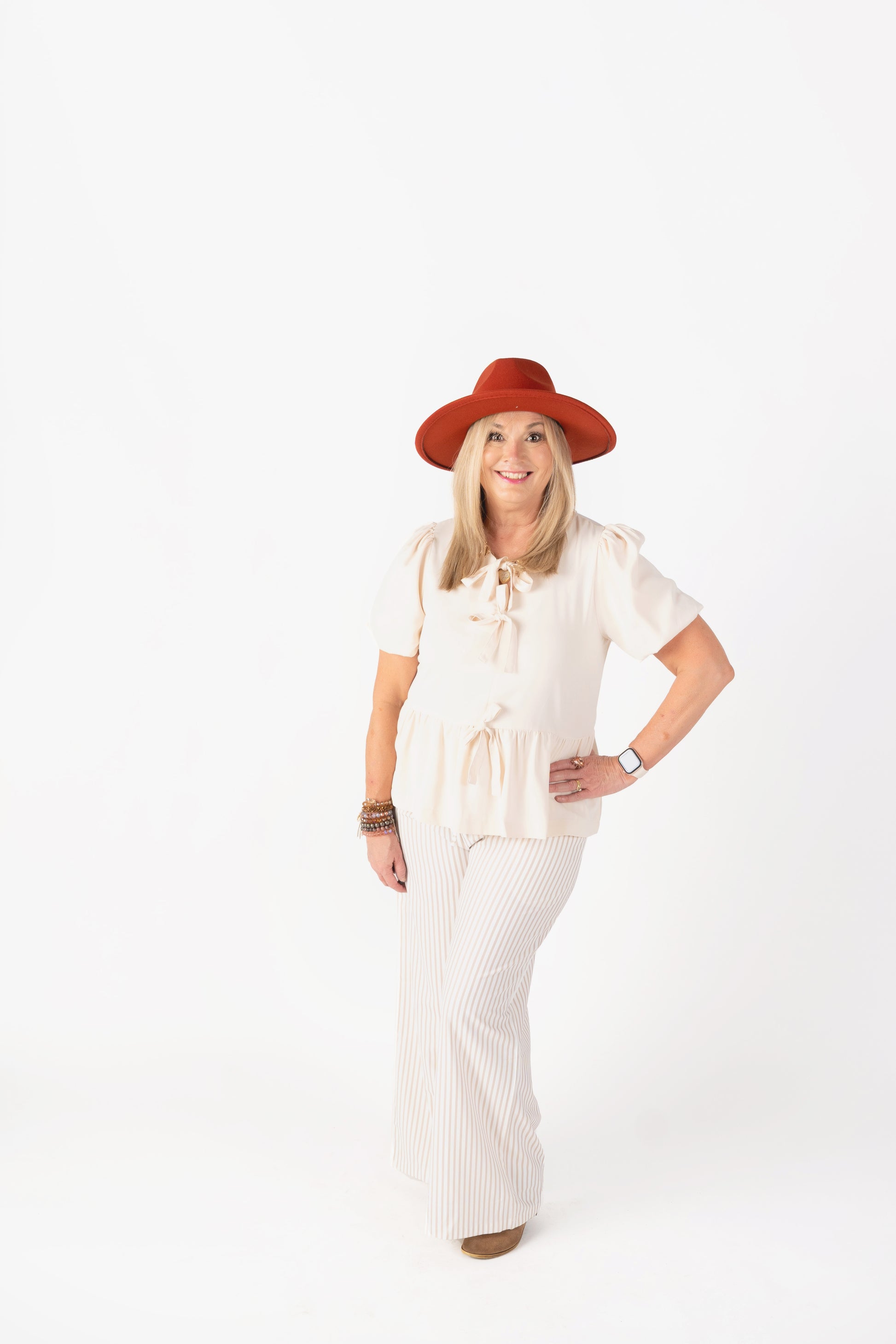 Meet your new wardrobe essential: the Sandy Stride Pants! These loose-fit khaki stripe pants feature classic vertical stripes that elongate your silhouette while keeping you effortlessly chic. Perfect for any occasion, they’re designed with comfort and style in mind, making them ideal for workdays, brunch dates, or relaxing weekends. Pair them with a fitted top or a flowy blouse for a look that’s polished yet laid-back.