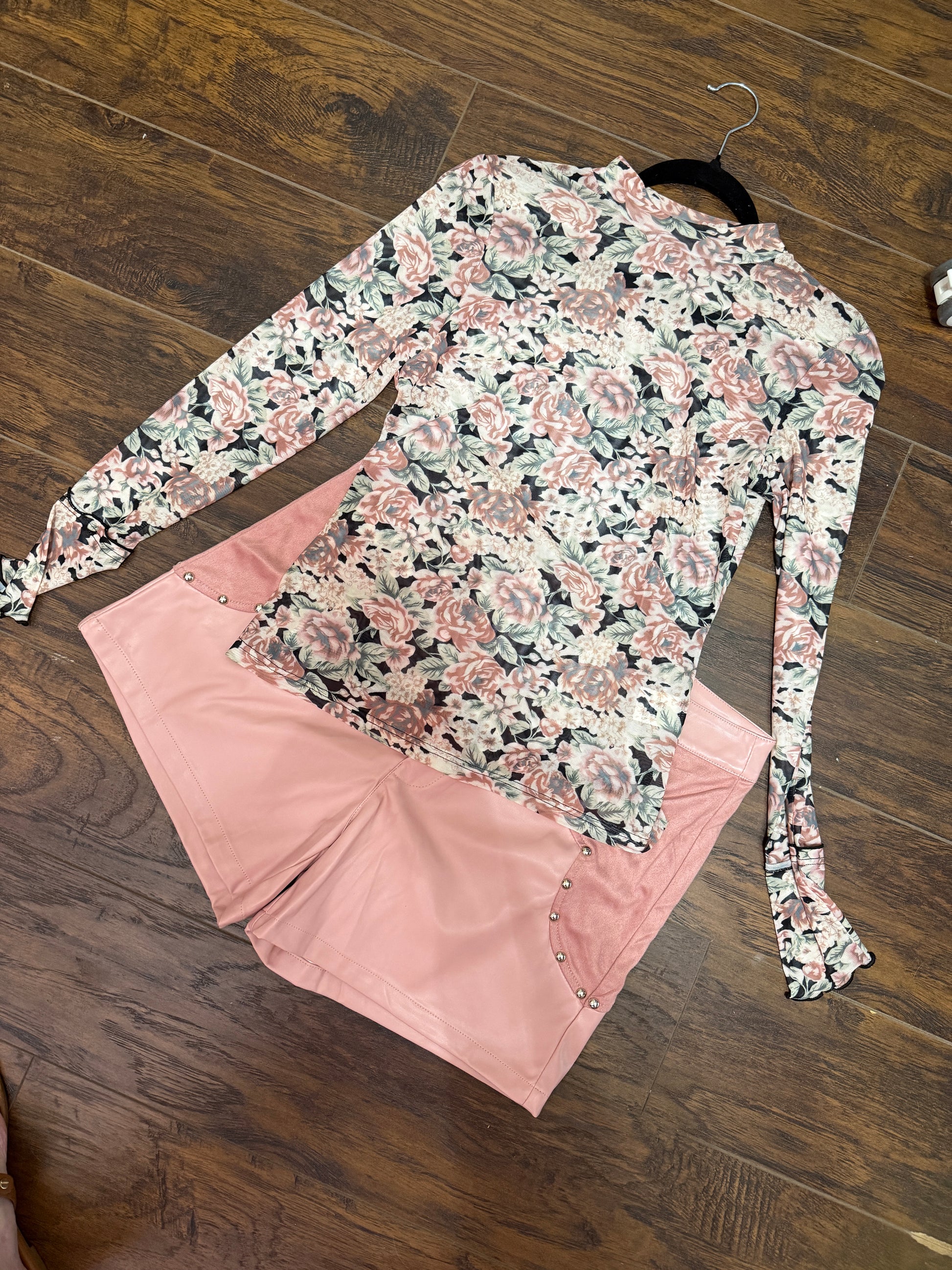 Turn heads and add a touch of luxe to your wardrobe with our Studded Pink Shorts. Crafted from soft faux leather in a beautiful light pink, these shorts feature a chic suede panel on each side, outlined with delicate stud detailing for an edgy yet feminine look. Whether you're dressing up for a night out or keeping it casual for daytime fun, these versatile shorts are sure to elevate any outfit. With their flattering fit and trendy details, these shorts can easily transition from a casual brunch with friends to a night of dancing. Pair with a simple top for a laid-back vibe or dress them up with a blouse for a more elevated look. Either way, you’ll be styling these shorts all season long. Color: Light pink faux leather with suede side panels and stud detailing